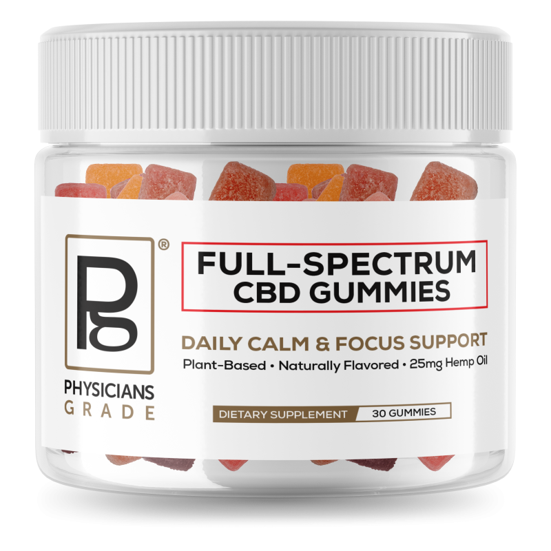 Experience the natural calm of Physicians Grade Full-Spectrum CBD Gummies—an expertly formulated wellness supplement made with 25mg of hemp-derived phytocannabinoids in every bite. Our full-spectrum formula harnesses the benefits of CBD and naturally occurring cannabinoids to promote relaxation, mental clarity, and stress relief without the high.