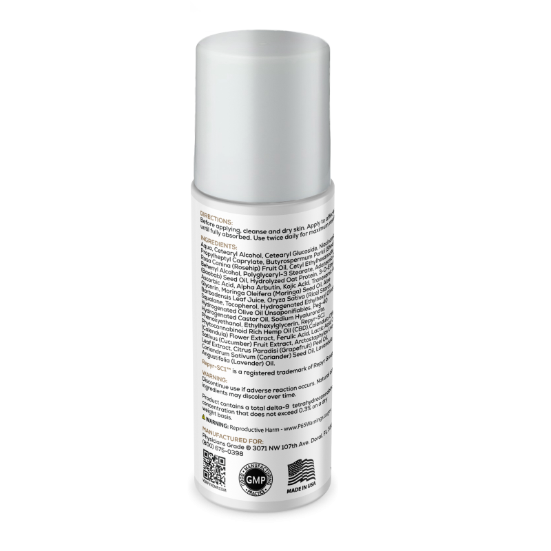 Reveal radiant skin with Repyr-SC1™ Dark Spot Corrector, an advanced botanical brightening treatment formulated to target stubborn discoloration and enhance skin clarity. This multitasking moisturizer features 250mg of Repyr-SC1™ Phytocannabinoid-Rich Hemp Oil (Cannabidiol) to support skin repair and reduce the visible signs of inflammation. Niacinamide, alpha arbutin, and kojic acid work synergistically to fade the look of age spots, sun damage, and uneven tone—without irritating your skin.