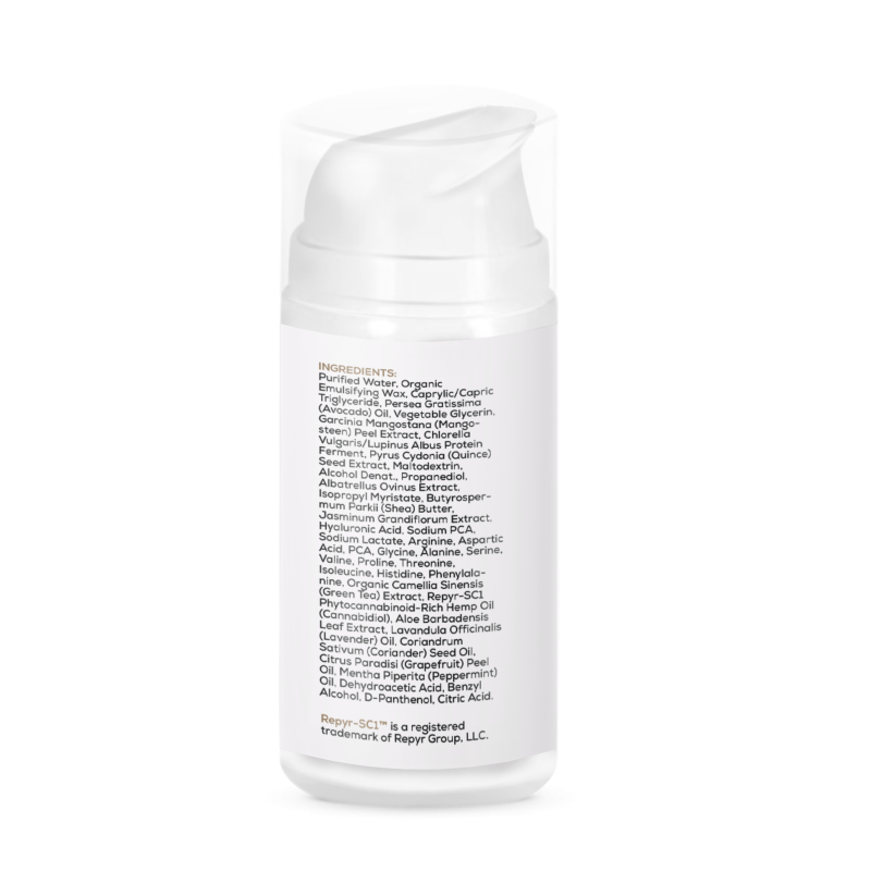 REPYR-SC1™ Sun Soothe Moisturizer is a powerful, post-sun recovery formula designed to cool, calm, and deeply hydrate skin after UV exposure. Infused with phytocannabinoid-rich hemp extract, this nutrient-dense cream helps reduce the feeling of tightness while replenishing lost moisture for a soft, comfortable finish.